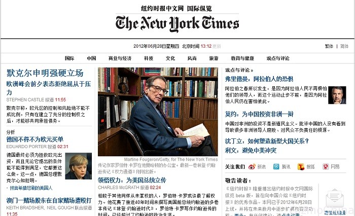 Chinese website of the New York Times today formally launched the New York Times also opened Sina, Tencent, Sohu and other official microblogging (but so far only Tencent microblogging can access Sina Sohu microblogging may be due to audit and other issues has not officially opened).According to the New York Times official said the Chinese site is still in the testing phase, they will in the following months in succession to complete the adjustment of the various functions, the spokesman said “New York Times” The Chinese version will readers Free news service.