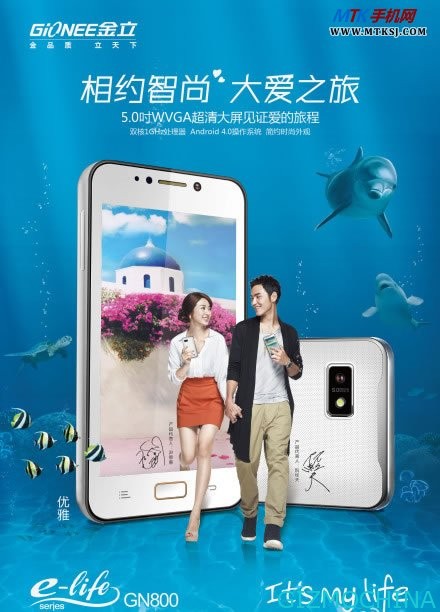 The Gionee GN800 has 5.0-inch screen size with 800 x 480 WVGA screen resolution, powered by MT6577 dual-core 1GHz Cortex-A9 processor, comes with 3 megapixel front-facing camera and 5 megapixel rear camera with LED flash.