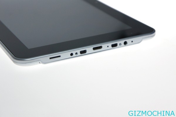 Unfortunately, this tablet has no rear camera, but there is front facing camera for video chat. But this tablet is powered by Mali-400 MP2 GPU based on dual-core is so powerful for playing 3D games and playing 1080 P video playback. There is speaker on the rear of the body, on the top body you will find the volume key and power button, while on the other side there are few ports and TF-card slots.