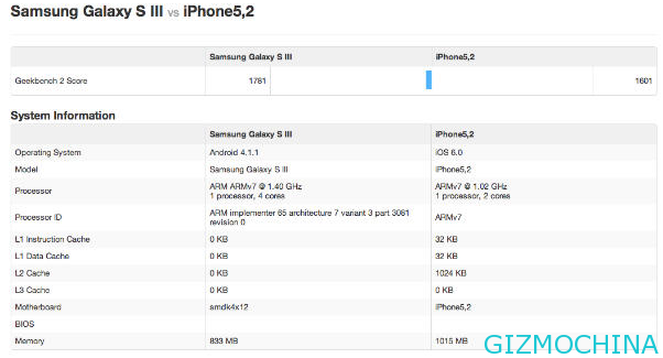 Furthermore, the test can be confirmed that the iPhone 5 uses a 1GHz ARMv7 processor with 1GB of RAM. Meanwhile, Google’s Nexus 7 is known as a tablet uses an Nvidia Tegra 3 quad-core chipset. While Samsung Galaxy S III powered by quad-core Exynos 4412 processor by Samsung.