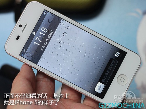 This phone is equiped with same design aspect of iPhone 5, you can see on the back body and 4-inch screen size while the 8 pin docking port is locate in the bottom, this phone has more than 95% similarity with real iPhone 5.