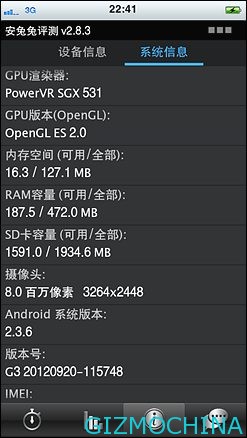 - Operating system : Android 2.3.6 (Apple iOS style)