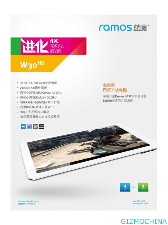 Ramos W30HD is an upgrade version which packed with 1920 × 1200 full HD resolution display, and powered by quad-core chipset, this is become the first tablet from domestic manufacturer which has quad-core and high-definition screen display.