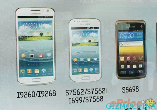 This ad of the phone has been spotted on a bus station ad in Guangzhou, China.The banner advertises the latest Galaxy range from Samsung which also includes two variants of Galaxy Premier bearing model numbers – I9260 and I9268.