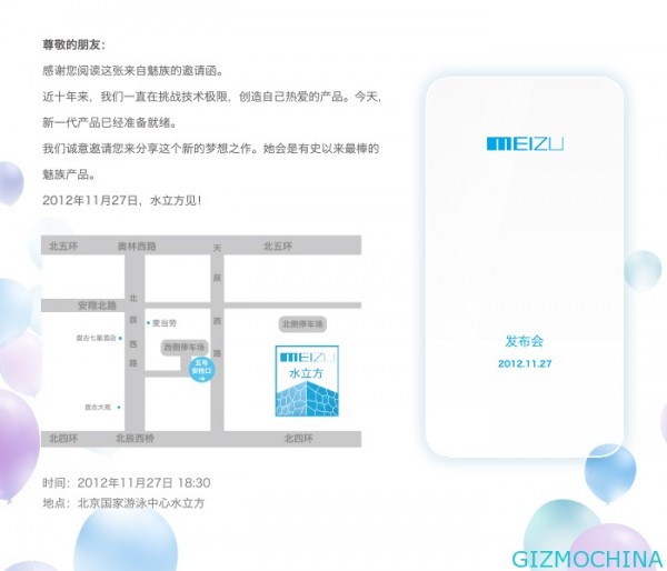 While we are waiting for Meizu launching today, we got nice information about the first Meizu conference, this news is came from Meizu official press release which send to media partners who will participating in the Meizu event at November 27, 2012 and the venue is in Beijing Water Cube.