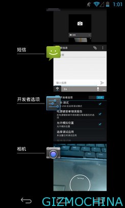 The ring layout photographed option is a major feature of the Android 4.2 system, the full sense of science and technology, including switching master / slave camera HDR mode, flash, contrast, white balance and set six options.