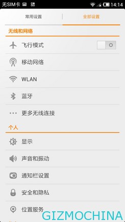 Came to the set menu, which is more intuitive and native Android 4.1 system is similar. However MIUI interface divided into commonly used settings with two pages of all settings, such as commonly used pages can list users while ignoring more setting options less frequently used settings, does MIUI consider user convenience needs has a unique side.
