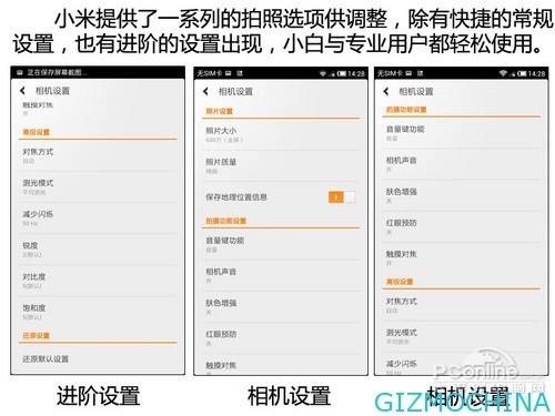 Xiaomi mobile phone also offers some camera shortcut option, press the arrow can be quickly set up, in order to more detailed settings such as AF mode, metering mode, sharpness settings, we want to enter into a detailed phone modify camera option inside. This both fast and comprehensive design also reflects the MIUI attainments humane.