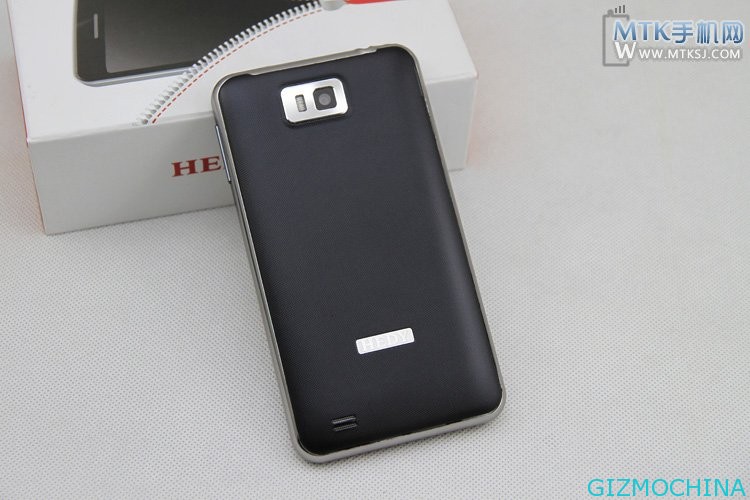 HEDY logo in the top of the screen, there is 3 megapixel front facing camera for video calls under the self-timer with 3G network. The body design is very simple, the top of the fuselage is the CMOS main camera with megapixels with LED flash light, below only seven LOGO speaker, the back of the fuselage in order to increase the feel arc shaped design.
