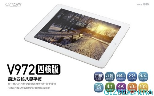 Onda V972 quad-core version only has 3.9mm thinner body, the world’s leading integrated molding manufacturing process, top aluminum metal material selection, the perfect combination, and then integrated into a powerful quad-core performance, more clear screen, better configuration Tablet users will bring a different tablet experience!.