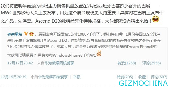 The open from exposure before Yu Chengdong use this phone Ascend Mate. It is reported that the smartphone equipped with a 6.1 inches 1080p touch screen, powered by Hass K3V3 with a frequency of 1.8GHz quad-core processor, sports with 2GB of RAM. In addition, the smartphone will be equipped with a 4000mAH large capacity battery, and a thickness of less than 9.9mm.