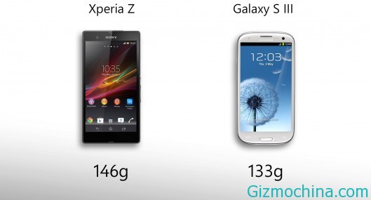 Xperia Z more focused in terms of weight, but in our hands Samsung Galaxy S III is not using those term. This is mainly due to two phones using different materials design on the back, While the Xperia Z back body cover is made from glass, Galaxy S III is made by high-quality plastic.