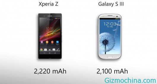 Sony’s battery has slightly higher capacity, The Xperia Z uses a 2220mAh battery, the Samsung Galaxy S III uses a 2100mAh. Although the Xperia Z have a higher battery capacity, but due to the higher ppi display currently unclear endurance performance.