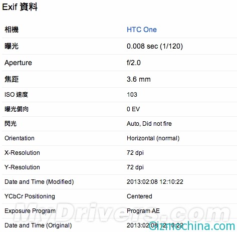 Based on EXIF information, the phone will be equipped with F2.0 large aperture, but the photo resolution is only 1024 × 1811, obviously not full pixel shooting, so the uncertainty whether the camera has 13 megapixels rear-facing camera, do not know is not really UltraPixel photosensitive element.