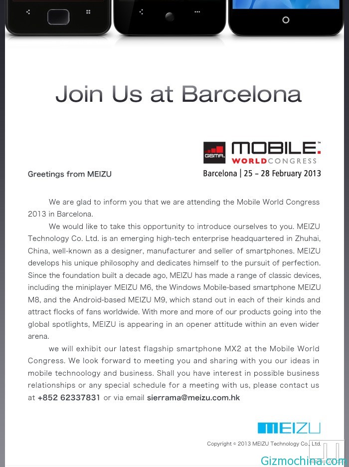 Today, foreign media exposure of the a Meizu application letter, and its contents to the effect that they want to participate in the 2013 Mobile World Congress held in Barcelona. In addition, Meizu said the letter of application, they also wanted to join in the Mobile World Congress (MWC) 2013 to show their new flagship smartphone Meizu MX2.