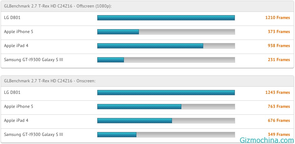 Keep in mind this is just the test results show 1080p Offscreen process, so that the results obtained by the LG Optimus G does not fully indicate the overall quality of the phone. It seems that when the release of the LG Optimus G2 will be approached, let’s us wait.