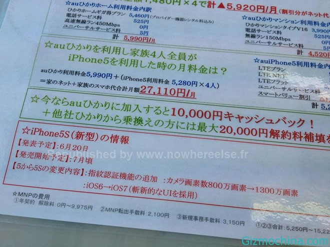 A leaked picture from KDDI documents show that pre-orders for the iPhone 5S will likely begin on June 20. Then will be officially launching in July.