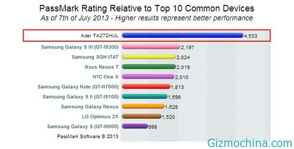 Acording to reports published by Notebook Italia on benchmark results for the latest Acer tablet with the model number TA272HUL has the support of NVIDIA Tegra 4 1.8GHz processor. Not only that, the new Acer tablet based on the Android 4.2.2 will also be equipped with a high screen resolution support WQHD (2560 × 1440 pixels) and 2GB of RAM.