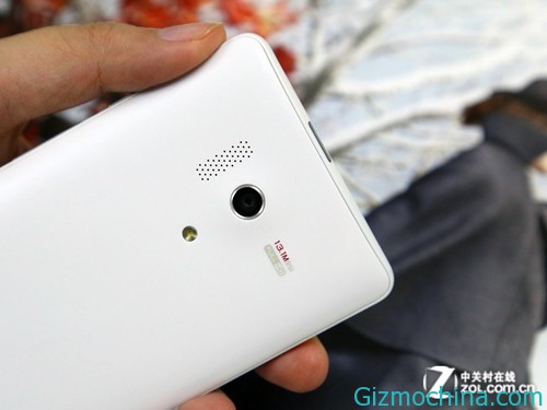 Huawei Honor 3 of the fuselage is also a simple design, logo at the bottom, camera, speakers and flash are at the top. Huawei Honor 3 on the back there is actually a certain arc, so in a single-hand grip is very fit hand, combined with a smooth cover material itself, or feel very comfortable.
