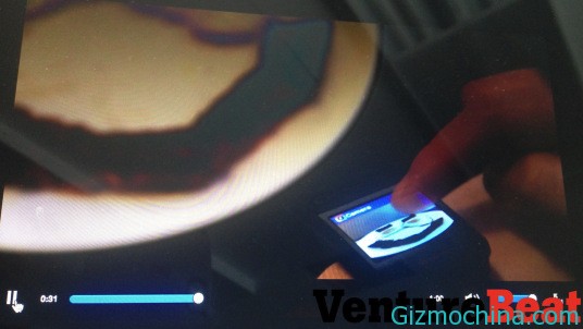 The picture is appear from venture Beat website, those picture is taking from a video since the media didn’t allow to taking the real picture directly. According to the picture, the Galaxy Gear will packs with 3 inch of OLED screen and will be sports with speaker alongside on the top and bottom of the screen.