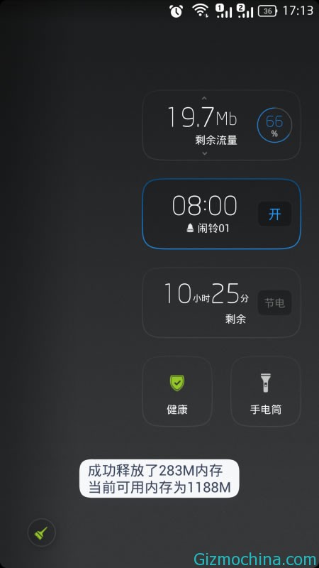 Must say that Lewa OS5 join an innovative aerial view screen by pressing the HOME key and swipe the screen to bring up the interface in addition to the running program to manage switching, but also focused on a key clean-up, multi-tasking switching, traffic monitoring, alarm and power-saving mode, and a key scan function, the phone status with a glance understanding.