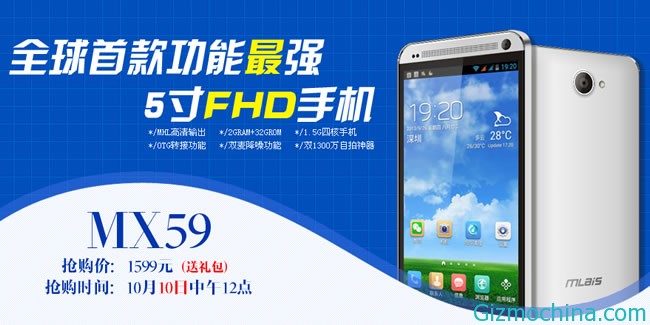 After the rumors about the new MLais smartphone was spread out in the net recently, is now we have the information about the MLais MX59 Android smartphone, the new MLais MX59 is now officially hit the market on October 10th, 2013.