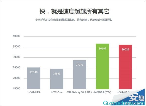 The new Xiaomi MI3 China Unicom version has powered by Qualcomm Snapdragon 800 processor, that phone got more than 36,026 score point in benchmark test.