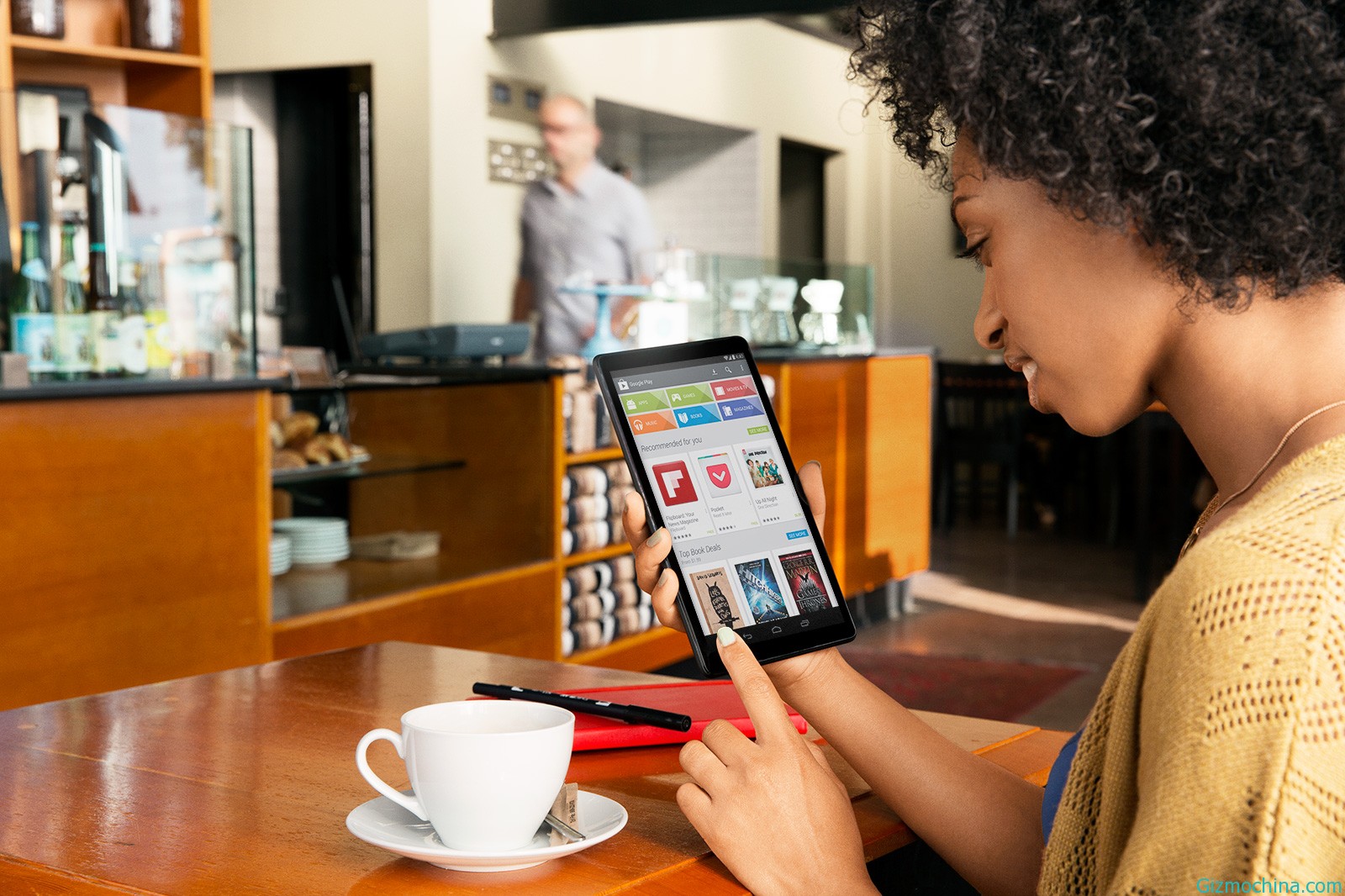 Google seems is accidentally to show their tablet devices that show on the promotional image that shows the girl with tablet device in her hand, the tablet seems running Android 4.4 KitKat.
