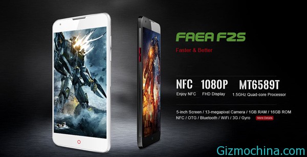 Faea F2s has 5-inch 1080P OGS FHD screen, along with 1.5GHz MediaTek MT6589T quad-core processor, 1GB RAM and 16GB storage, 13-megapixel rear camera and Android 4.2 OS. This phone support NFC, OTG and gyroscope sensor, these are different features than other China phones.