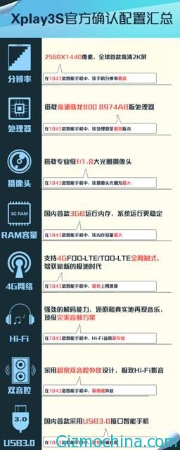 The Vivo Xplay3S will has 3GB of RAM, while the camera lens has aperture f/1.8. There is also Hi-Fi audio chip, support for USB 3.0 and 4G connectivity.