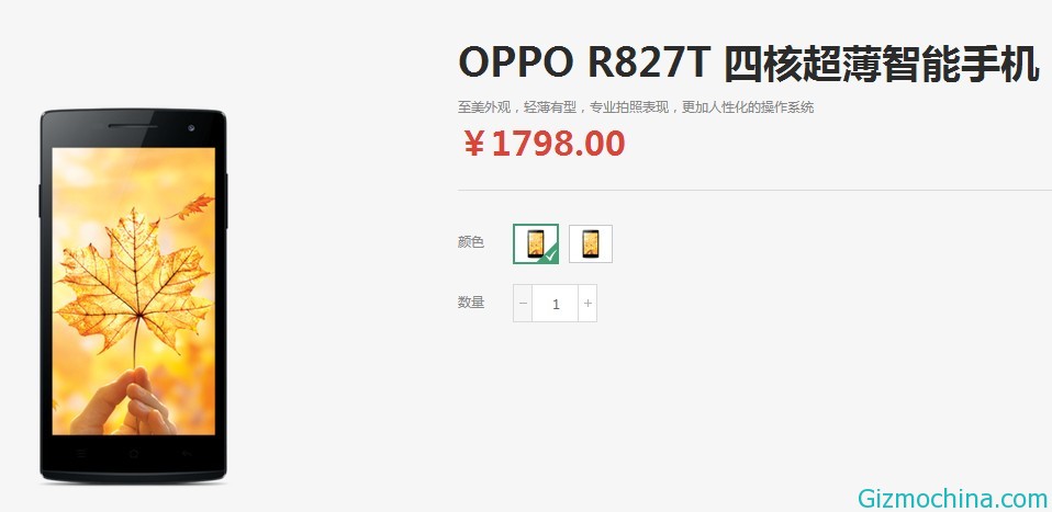 Under the auspices of the operator China Mobile, the Oppo R827T marketed for 1,798 yuan or around $296 USD per unit.