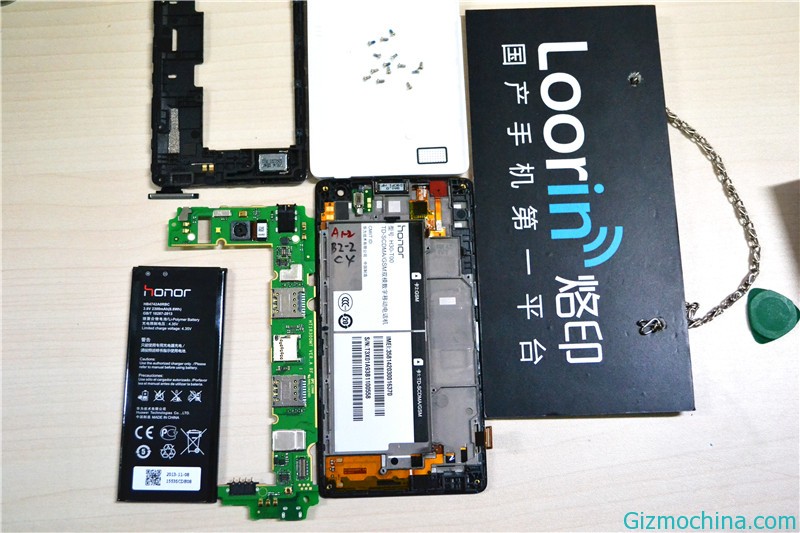 Here are the teardown picture of Huawei honor 3C, and we can see what’s on the inside: