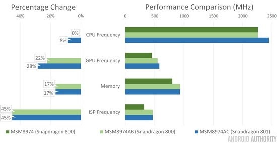 And the difference between MSM8974AB and MSM8974AC is only in graphics processor and clocked speeds, while the other parts is identical.