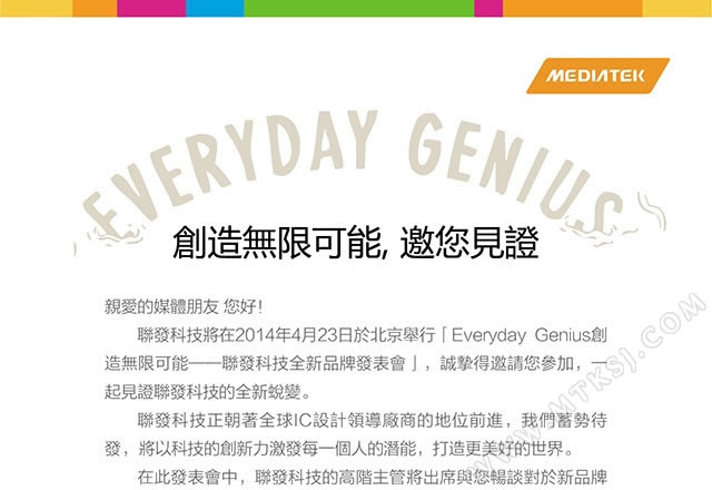 mediaTek is ready to held the big conference, the event has “Everyday Genius, create endless possibilities”. And now we have a confirmation that MediaTek is ready to release their new products, in addition to chipset lineup, there is a wearable device too.