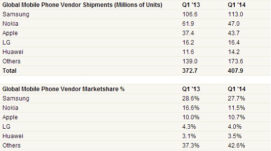 Lenovo is in the process of taking over Motorola, and that means they are going to continue to be fierce competition. Microsoft is finishing up a deal with Nokia, so be ready for some big changes to show in the figures for the second quarter of 2014.`FXEOCT6A(C5]ZX.jpg)