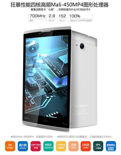 CHUWI VX3 has octa-core processor, 7-inch 1200p screen, priced at 999 yuan($160). But before the official specific configuration and there are some differences in exposure, the processor did not use 2GHz MTK6592, instead of using a universal version 1.7GHz, battery capacity is only 3000 mA.