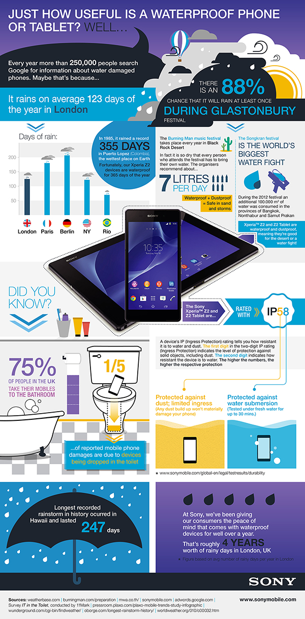 As a part of marketing strategy, Sony is now revealed the infographics about useful of waterptoof smartphone or tablet devices.