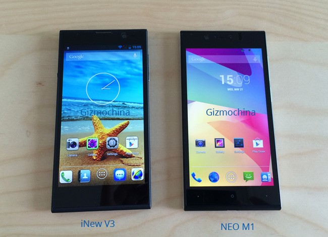 NEO M1 and iNew V3 both has 5-inch HD screen, 1.3GHz MTK MT6582 quad-core processor, 1GB RAM and 13-megapixel rear camera.