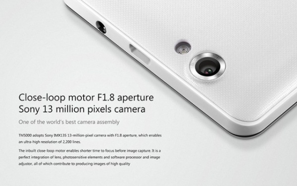 THL 5000 own a 13-megapixel f/1.8 aperture Sony iMax camera lens, 1.7GHz MTK MT6592 octa-core processor, 2GB RAM and 32GB ROM, 5-inch FHD screen and support NFC, OTG, Bluetooth 4.0 features.