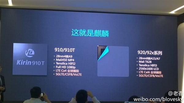 The new Kirin 920 is also support for LTE Cat 6 and support for global band, it’s also supports SGLTE / CSFB and VoLTE voice calls such as 4G way. According to the picture that posted on microblogging site, the new Huawei Haas Kirin processor is also appeared as Kirin 92x and this mobile processor seems ready to compete with another mobile chipset on the market, such as Snapdragon 805 processor.