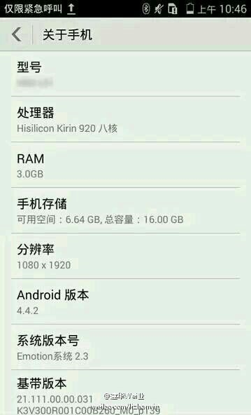 This phone has a 5-inch FHD touch-screen and runs on the Haisi Kirin 920 octa-core chipset with a main frequency of 1.3GHz. Its GPU is the Mali-T624 and has a built-in memory of 3GB RAM and 16GB memory space. It also has a 5mP front camera and a 13mP rear camera.