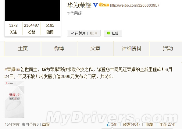 According to information that spread through Weibo microblogging site, the phone will be released on June 24th, the phone will be packs with 5-inch 1080p screen, fomerly this phone is leaked as the name Huawei Mulan.