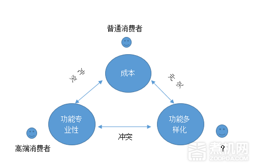 It’s hard to combine diversification with the specialization and capital of the device’s features. The two factors conflict with each other with the latter being more popular with consumers. The ordinary consumer cares more about costs while the high-end consumer cares more about specialization. Therefore, when companies make products, they should select one or the other.