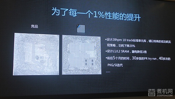 HiSilicon has made some improvements on the A16. Although it’s still not as good as Qualcomm and Apple’s cores, it’s no longer the simple free ARM version. They also improved the CPU’s and cache’s design. They also effectively integrated telecommunication technology into the chip. The powerpoint shows the results (the product still needs to be measured precisely).