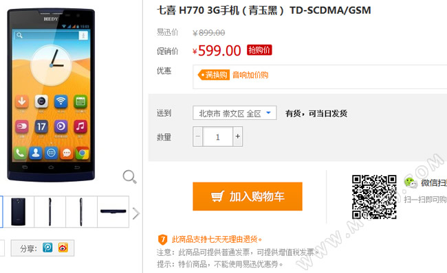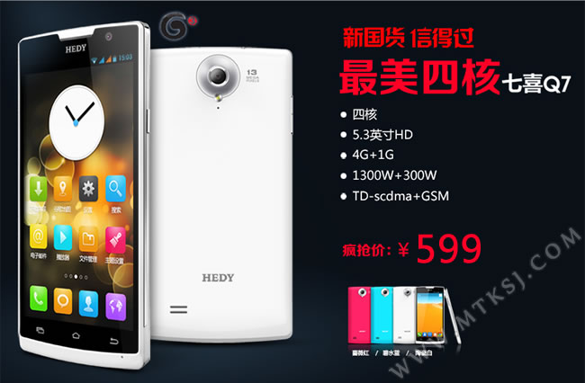 When it was first release, the Heddy H770/Q7 cost 999 RMB (160.25 USD). Recently, the black and white editions were listed in Yixun as only costing 599 RMB which is the lowest it has been sold for so far.