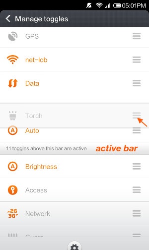Now the torch will be available on the Toggles Panel and tapping it will turn the flashlight on and off.