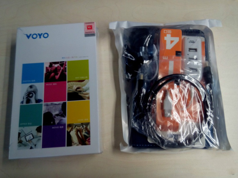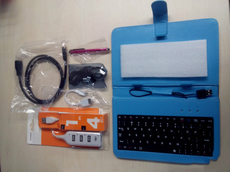 Inside the box are a case, USB Hub, HDMI wire, OTG wire, electric pen, and earphones