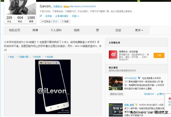 Just two days ‘ time, MI4 will meet us in state. We are sure Xiaomi Mi4 is not equipped with metal postoperculum, only borders are made of metal materials. As for specific configurations, the 5-inch-touch 1080p screen will be used, equipped with Snapdragon 801 quad core2.5GHz processor, 3GM RAM and 16GB ROM, providing a 5 MP front-facing camera and a 13 MP rear camera, 3000mAh battery , running MIUI V6.