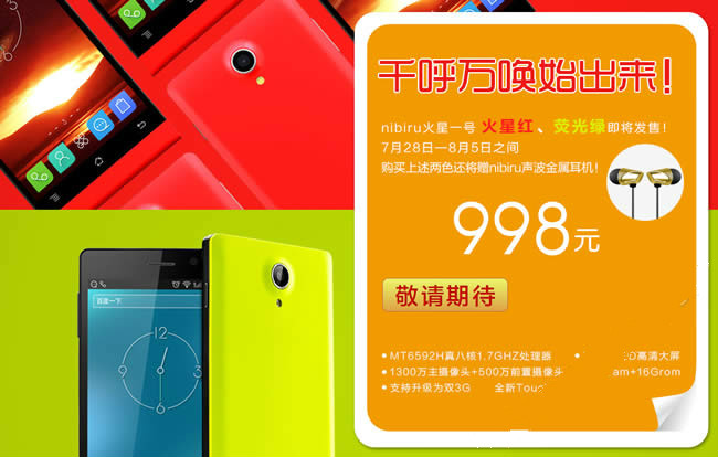 Nibiru recently announced that they will release a red and light green version of the successful Nibiru Mars One (H1). The H1 is currently available in white, pink, and blue. Increasing the number of colors should attract many users who are concerned about aesthetics, especially women. These two versions are slated to hit stores on July 28 and will still be sold at 998 RMB (161.17 USD). Those who buy the red and green H1 before August 5 will received a free pair of Nibiru metal earphones.