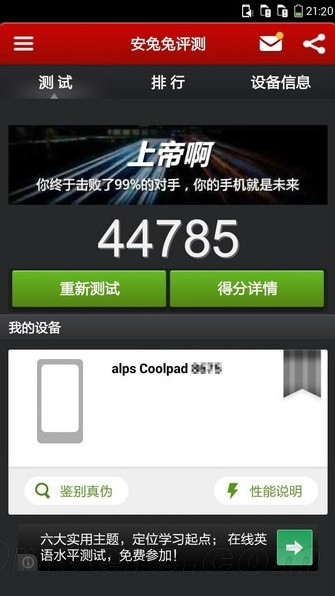 A phone that recently scored 44785 in the Antutu benchmark test has been revealed to be the Coolpad Dashen F2 (Coolpad 8675-HD). According to the Ministry of Industry and Information Technology, this phone sports a 5.5-inch 720p display screen, is 8.8mm thick, and supports TD-LTE internet.